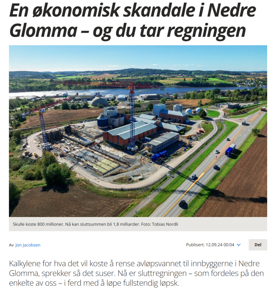 The calculations for what it would cost to clean residential wastewater in Nedre Glomma is completely over-budget. Now the final bill has appeared and it is unbelievable.